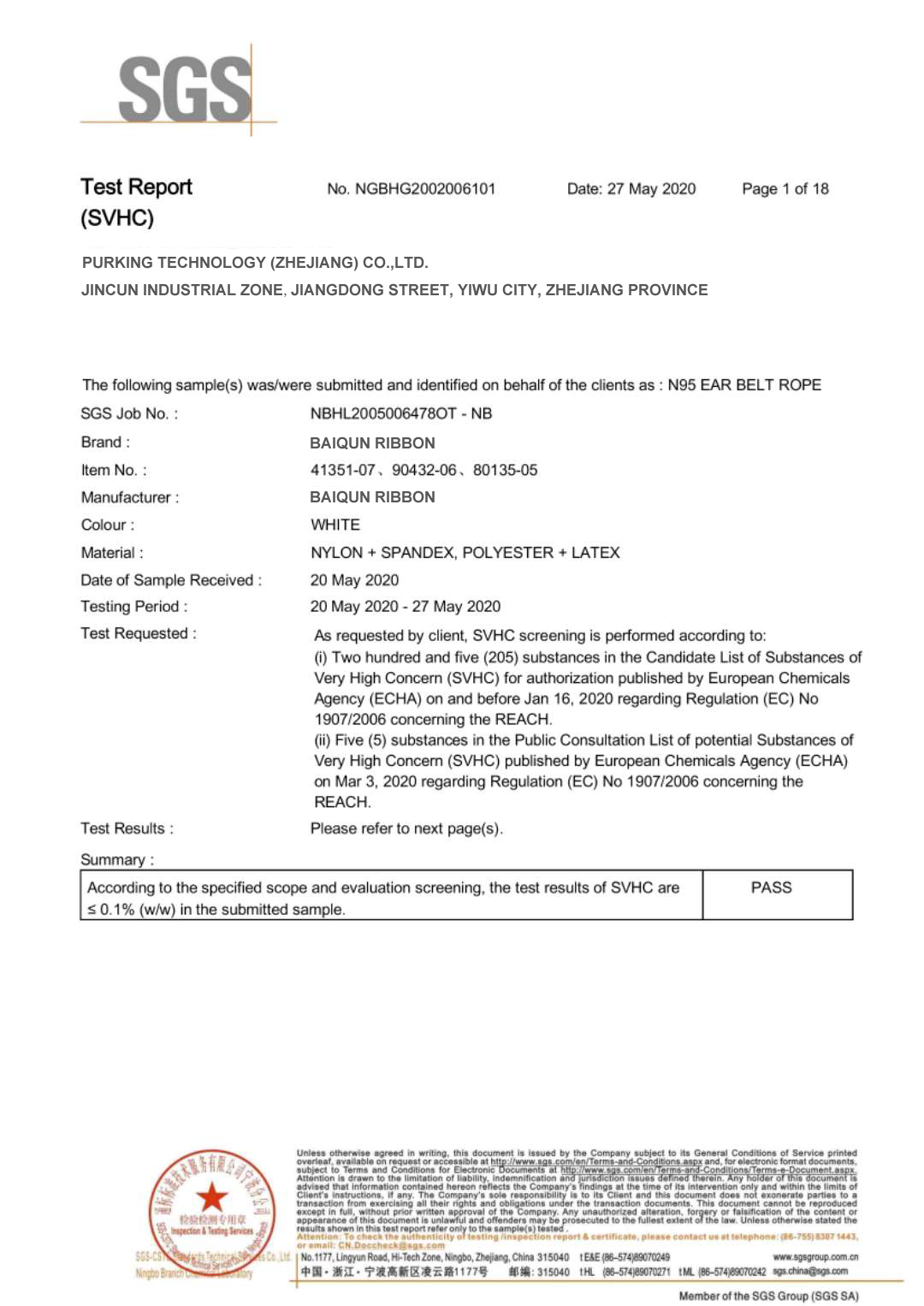 ჩვენს ყურის მარყუჟს აქვს კარგი ელასტიურობის, სინაზისა და კომფორტის უპირატესობები და ა.შ. ბრტყელი ყურის მარყუჟი ჩვეულებრივ გამოიყენება N95 ნიღბებისთვის. მას აქვს გავლილი SGS საერთაშორისო სერტიფიკაციის სტანდარტი და ROHS გარემოს დაცვა, მიაღწია არატოქსიკურს და ა.შ.